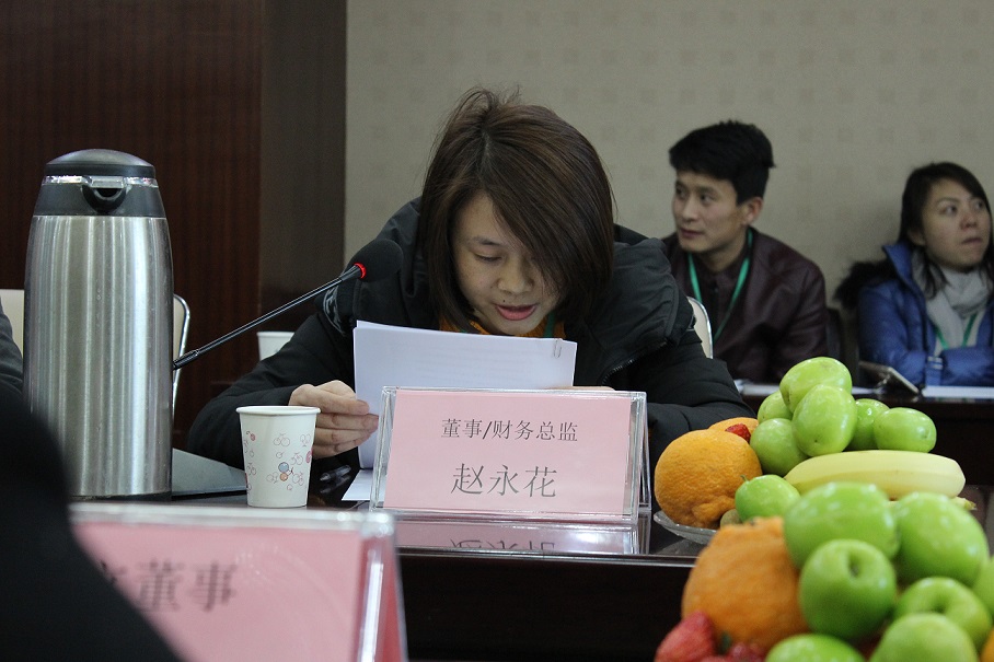 (圖為董事兼財務(wù)總監(jiān)趙永花作財務(wù)工作報告)