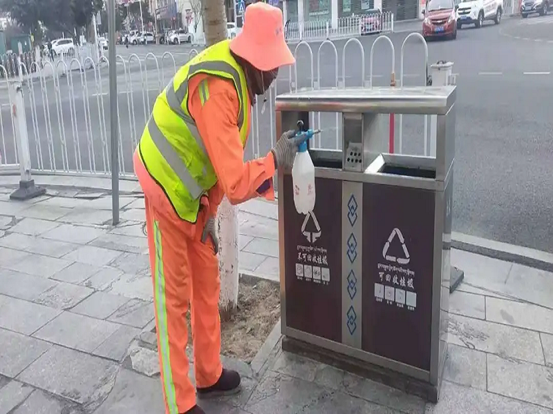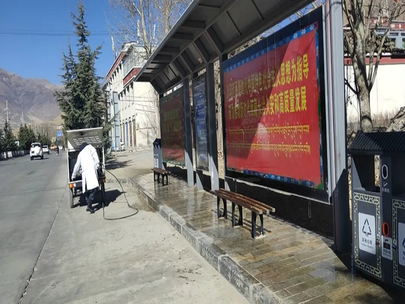 自疫情發(fā)生以來,國(guó)策環(huán)保林芝分公司一線環(huán)衛(wèi)工人們?cè)谧龊萌粘G鍧嵐ぷ鞯耐瑫r(shí)也多了一項(xiàng)工作——對(duì)街道環(huán)境及衛(wèi)生設(shè)施進(jìn)行消毒工作。