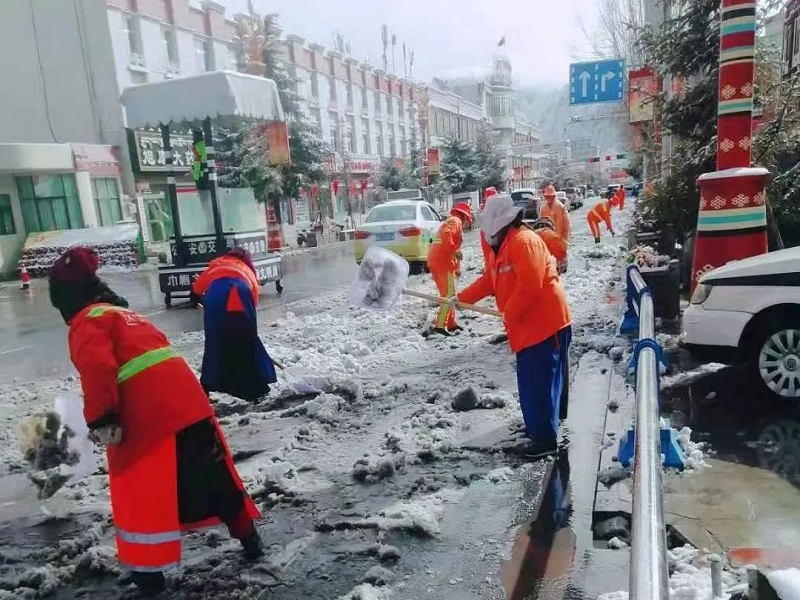 日喀則分公司一線環(huán)衛(wèi)工人以雪為令全力投入到除雪工作中,做到人隨雪動,“雪未到,人先來”,確保各主次干道見本色、無積雪、無殘留的標(biāo)準(zhǔn)。