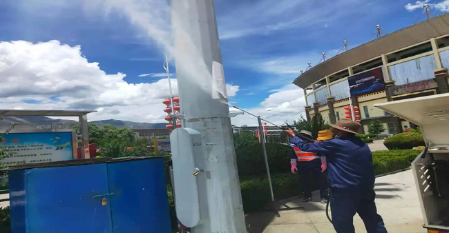 同時(shí),山南分公司還調(diào)配了15名員工、1輛高壓沖洗車、1輛灑水車、1輛洗掃車、1輛多功能沖洗車組成了體育場臨時(shí)清洗隊(duì),對體育場垃圾桶、電樁小廣告、周邊雜草以及地面等進(jìn)行了集中清理,通過采取高壓水槍沖洗和人工擦拭相結(jié)合的方式,體育場周圍環(huán)境及設(shè)施煥然一新,顯露“本色”。