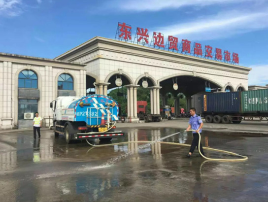 ▲對國門口岸旅游熱點景點進(jìn)行沖洗作業(yè)