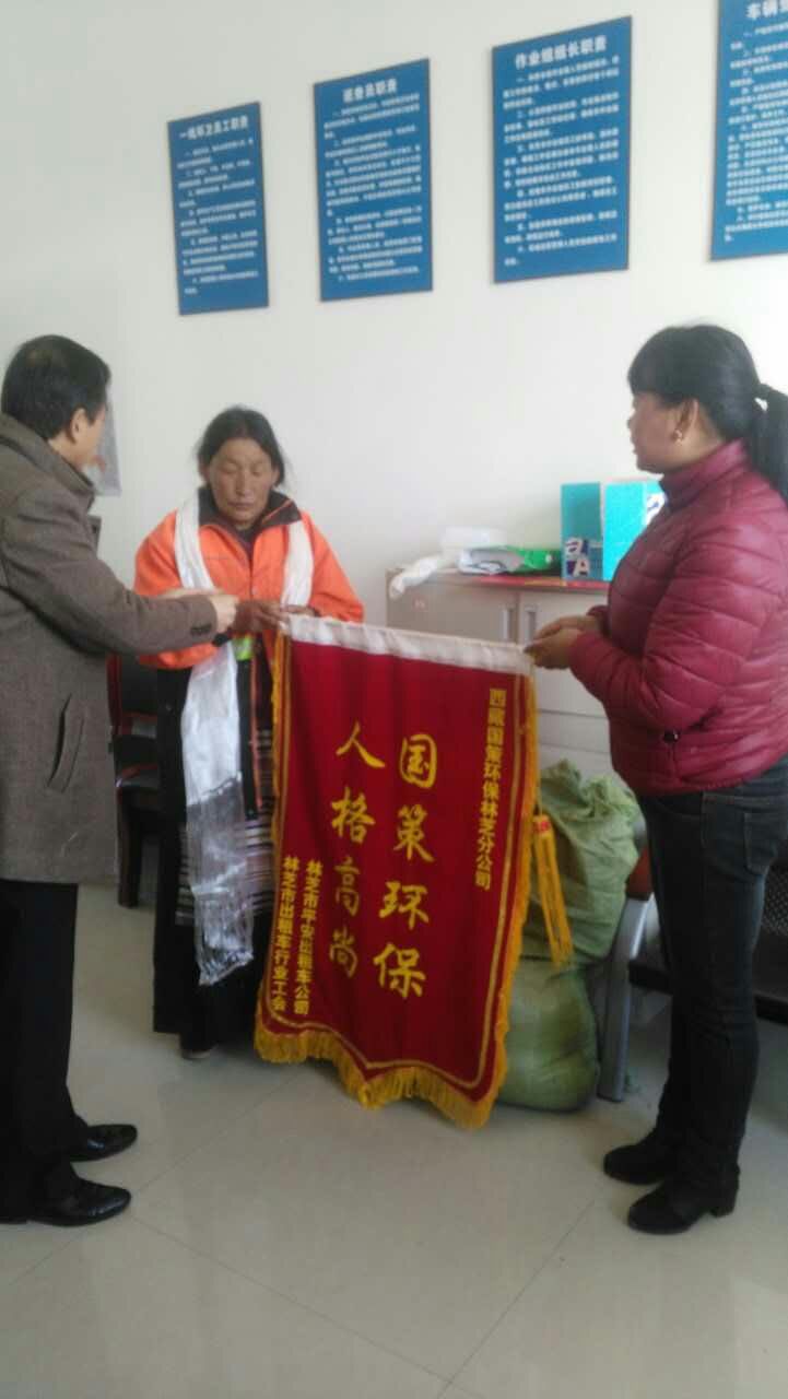 2017年3月27日,我公司環(huán)衛(wèi)工人在工作期間拾到某出租公司重要資料,及時與出租車公司取得聯(lián)系并歸還。該出租車公司領導為表達謝意,專程為我公司送來錦旗一面,并親自為這名環(huán)衛(wèi)工人獻上哈達和現(xiàn)金1000元作為感謝;同時對我公司這位環(huán)衛(wèi)工人拾金不昧的精神和我公司的管理方式贊不絕口。